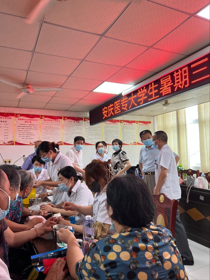 为庆祝中国共产党建党101周年,深入开展党的群众路线教育实践活动,7月5日,护理学院党总支组织全体党员和学生代表前往望江县开展党员实践教育及“送医下乡 健康服务”主题党日活动。校党委书记叶林霞以普通党员身份参加活动。