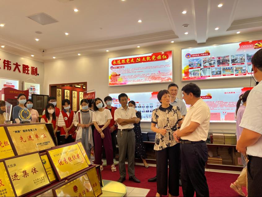 下午,叶林霞率队前往望江县文凯学校参观与交流。红色阅览室、智慧党建活动室、党性教育馆、德育教育群、四史长廊、毛泽东像章收藏室、应急救护培训基地串联成了独特的助力青少年成长成人成才的红色教育基地。文凯学校党支部书记汪毅介绍,学校先后荣获“第二批省级‘双比双争’先进社会组织党组织”和“安徽省先进基层党组织”,并就办学宗旨、党建引领群团组织等工作进行了交流与分享。