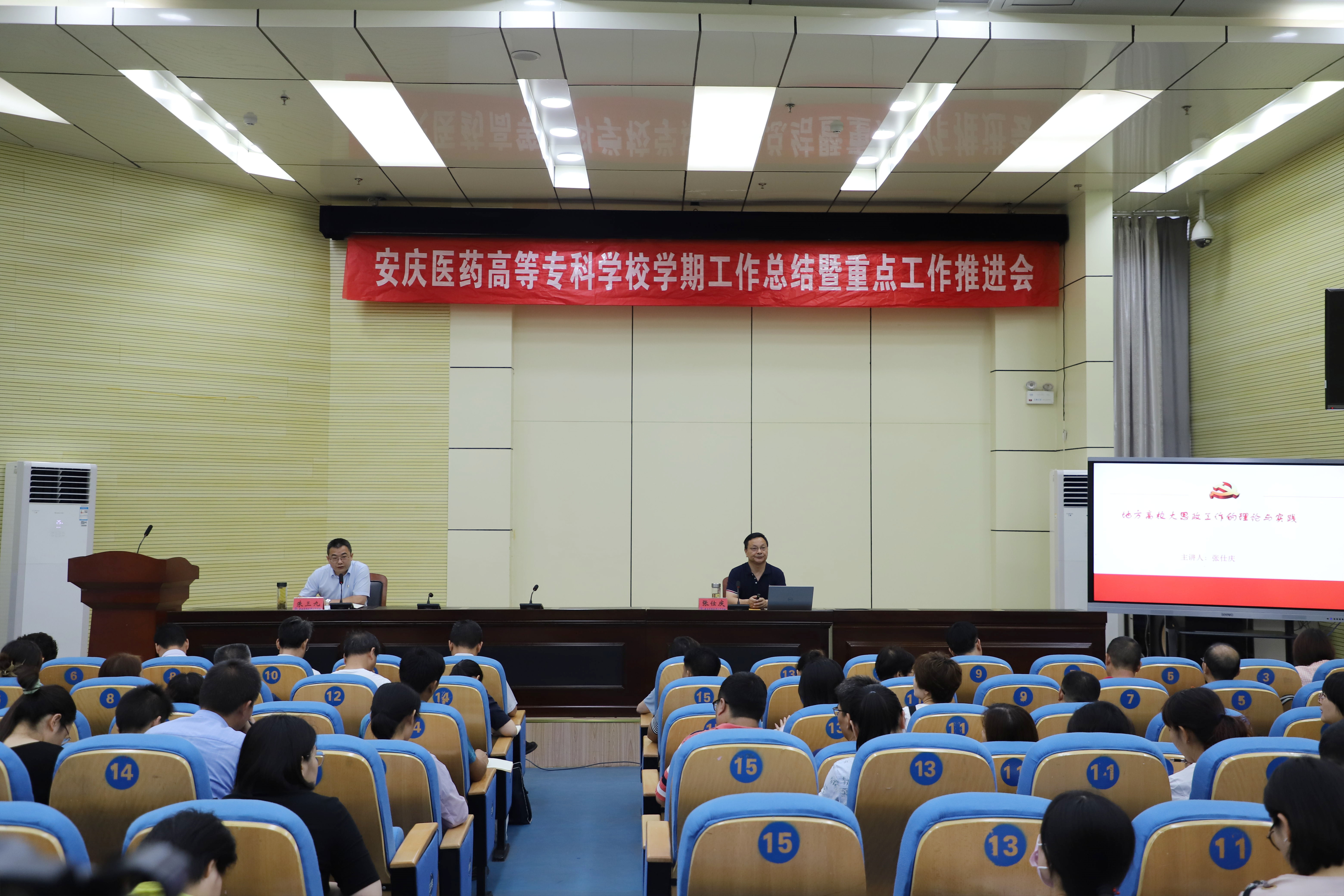7月7日,8位分管校领导精心准备,为全校教职工依次进行“党建、发展双融合”工作部署与专题辅导。校党委副书记张仕庆作“地方高校大思政工作的理论与实践”报告;校纪委书记陈燚作“高校党风廉政建设思考和建议”报告;副校长朱庆丰作“诊改工作与地方技能型高水平大学建设”;副校长毛以成作“以更高质量的保障和服务,促进学校内涵建设的提升”报告;党委委员朱三九作“一大二融三体系,打造657党建新高地”报告;党委委员朱雯作“提升管理意识,推进学校高质量发展”报告;党委委员陈琪作“我们的工作如何干?—团学、财务工作分享”报告;党委委员刘毅作“科研项目及科研平台申报实践与思考”。