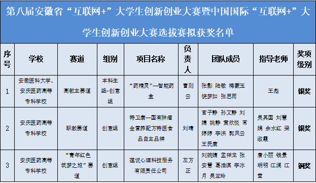 9月15日, 由安徽省教育厅与合肥市人民政府联合主办,合肥工业大学、合肥学院、合肥职业技术学院、安徽财贸职业学院和合肥市教育局共同承办的第八届安徽省“互联网+”大学生创新创业大赛暨中国国际“互联网+”大学生创新创业大赛选拔赛已圆满结束。大赛经专家网评、线上分组赛和线上极速路演等环节,今年会参赛项目获安徽省银奖2项,铜奖1项。