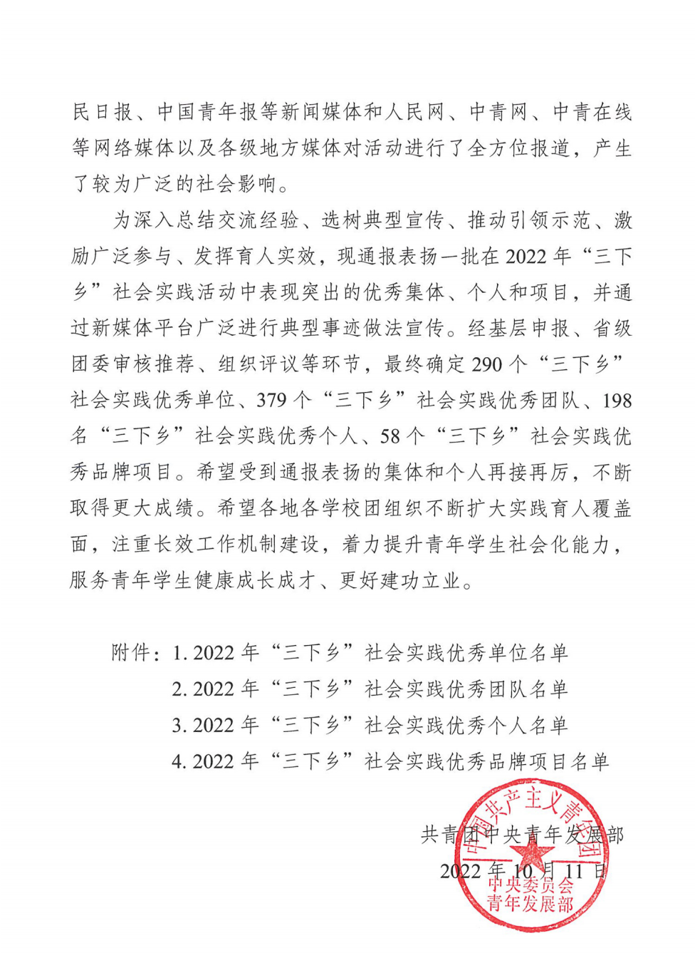 近日,共青团中央青年发展部公布2022年全国大中专学生志愿者暑期文化科技卫生“三下乡”社会实践活动结果,今年会团委副书记邓艳荣获全国暑期“三下乡”社会实践“优秀个人”荣誉称号。