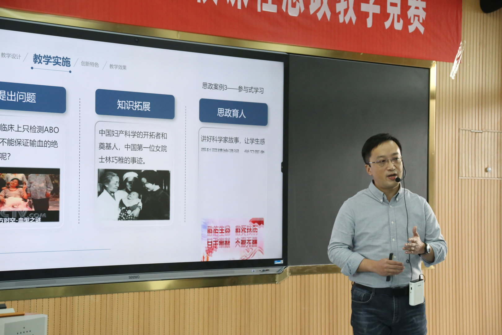 本次比赛分为课程思政教育案例介绍、课堂教学展示和现场答辩三个环节。各二级学院共遴选了18位教师参赛,参赛选手从学科特点出发,深入挖掘课程思政元素,将思政元素与专业有机融合,展示了优秀的教学风采和扎实的教学功底,赢得评委专家和线上线下观摩人员阵阵掌声。经过激烈比拼,来自基础医学院的汪敏、魏伟团队荣获一等奖。