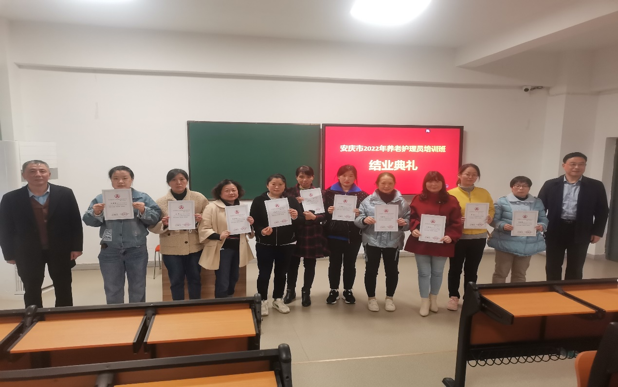 为期3天的培训以新版养老护理员培训教材为基础,聚焦养老护理员职业需要和老年护理需求,内容涉及老年护理基础知识、护理员个人防护、老年人日常照护基础知识、老年照护基础技能、老年应急救护技能等,以实践实操为主要教学形式,并开设了参观安庆市中医院、应急救护培训基地、人体科学馆等现场教学环节。培训受到社会各界一致好评。(撰文、供图:马文娜;审核:孙坤)