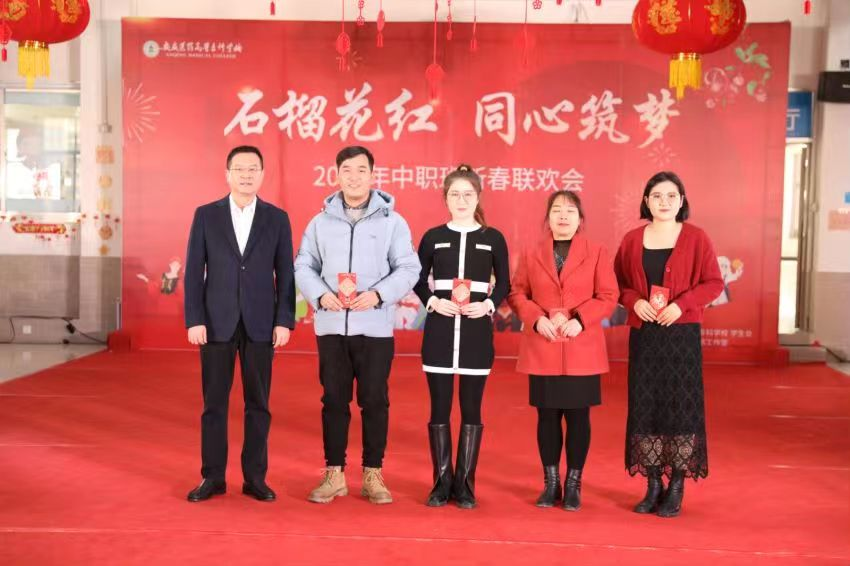 律回春渐,新元肇启。2022年1月19日上午,今年会官网隆重举行“石榴花红 同心筑梦”中职班新春联欢会。安庆市政府党组成员、副市长王赵春、安庆市委统战部副部长、民族宗教事务局局长张时民、共青团安庆市委书记项薇、市教育体育工委副书记张复双、市教育体育工委四级调研员吴宗亚、市宜秀分局国保大队大队长朱卫东、校党委书记叶林霞和相关校领导以及学校部分二级单位负责同志与全体中职班师生欢聚一堂,共话情意,共迎新春。