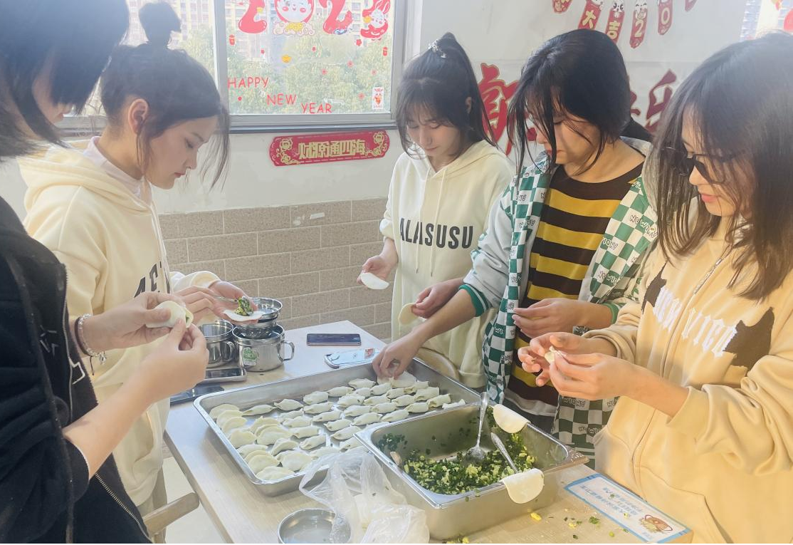小小的饺子,承载着浓浓的祝福,让美好的团结情、归属感、幸福心在热腾腾的饺子中不断传递。“这是我第一次在春节没能回家和父母团聚,但学校准备的一切让我感受到家一般的温暖。”22级新生迪丽努尔说到。