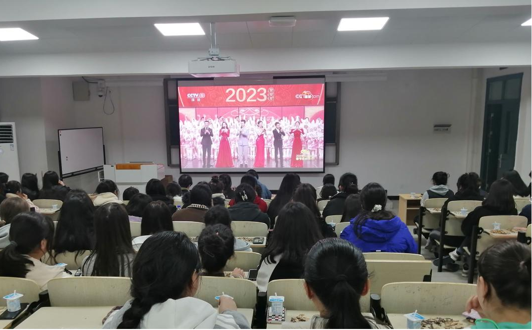 “写春联、送福字”是我们最喜闻乐见的传统节庆习俗之一,其中蕴含着丰厚的中华传统文化之美。学生们挥毫泼墨,一同写春联、写福字,将学习、生活场所装扮的红火、喜气。除夕夜,中职班派驻老师和同学们早早来到阶梯教室一起观看兔年春晚,同学们感受到了浓浓的中国年氛围。