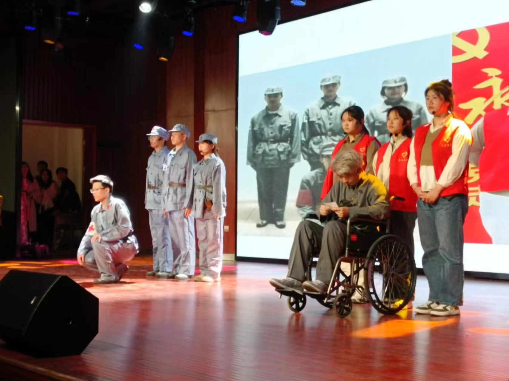 《反哺》以VR设备暴露疗法技术为脉络,通过言心心理协会同学的志愿服务帮助老年人进行创伤应激障碍的恢复,通过表演反映出言心心理协会的同学们是一整个新时代大学生青年的缩影,他们也正在用自己的力量反哺着社会,让现场观众产生了情感的共鸣。