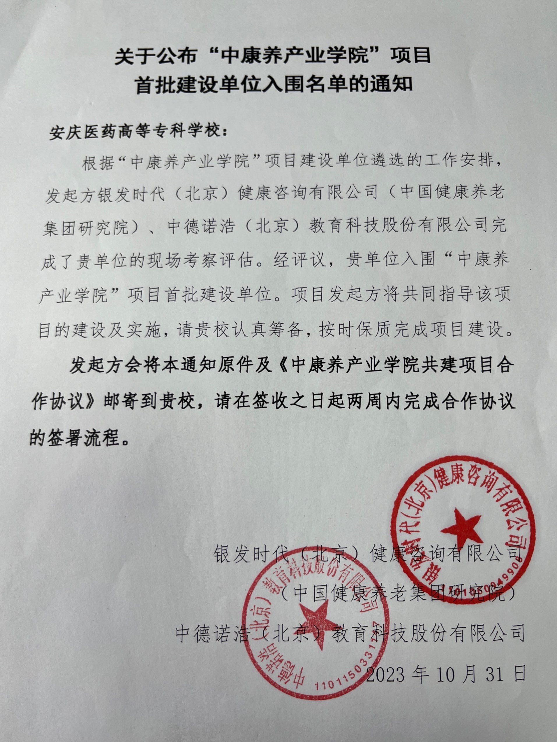 学校也将以本次产业学院项目的成功申报为契机,按照教育部办公厅以及工业和信息化部办公厅现代产业学院建设指南要求,进一步深化人才培养模式改革,完善产业学院体制机制,不断提升专业建设质量,确保产业学院建设成效,以培养高素质人才和推动康养产业的发展为目标,为康养产业健康发展提供人才和智力支持,服务安庆地区康养事业发展,打造省内乃至全国范围内标杆性产教融合实训基地和康养人才培养高地。(撰文、供图:吴鸿玲)
