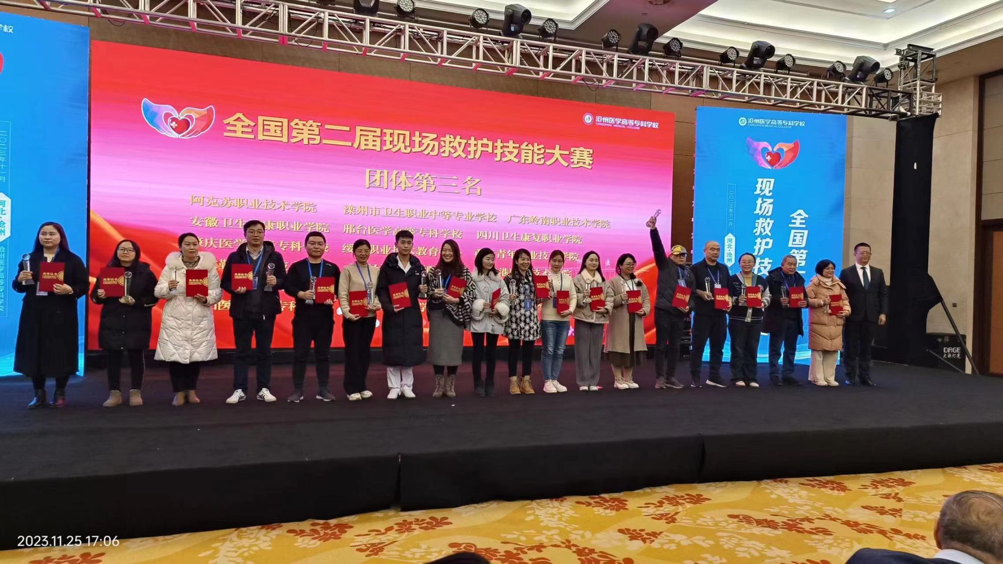 11月23日,全国第二届现场救护技能大赛在河北沧州顺利举行。接竞赛通知后,校党委主要领导高度重视,亲自部署并安排校、院领导带队参赛。医学院以2021级临床医学专业4名在校生组建的队伍在大赛中表现优异,喜获团体三等奖,个人二、三等奖和优秀奖各一项,四位指导教师分获优秀指导教师奖。