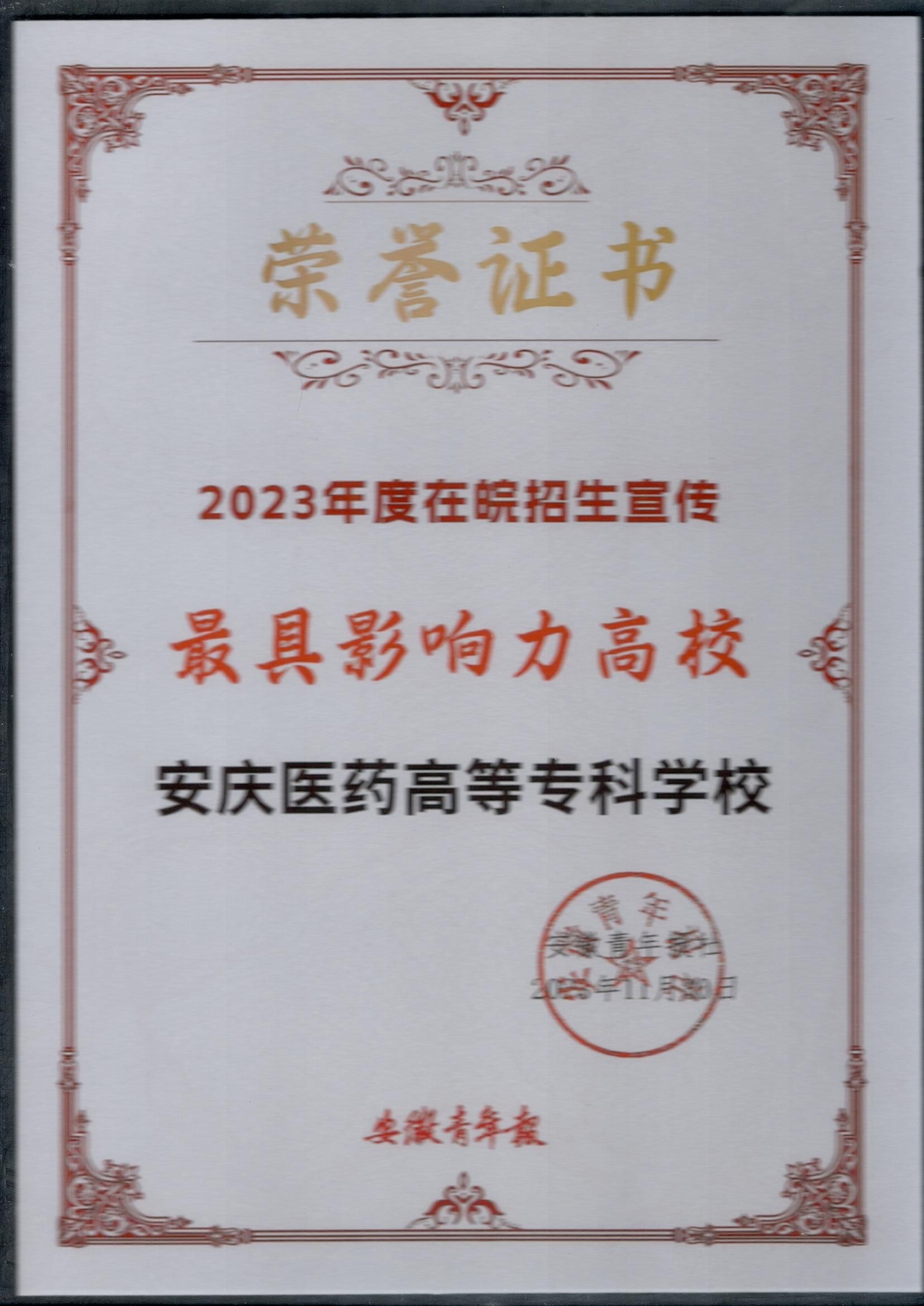 近日,在安徽青年报社组织的2023年招生宣传工作总结表彰中,今年会被表彰为安徽省“最具影响力高校”。
