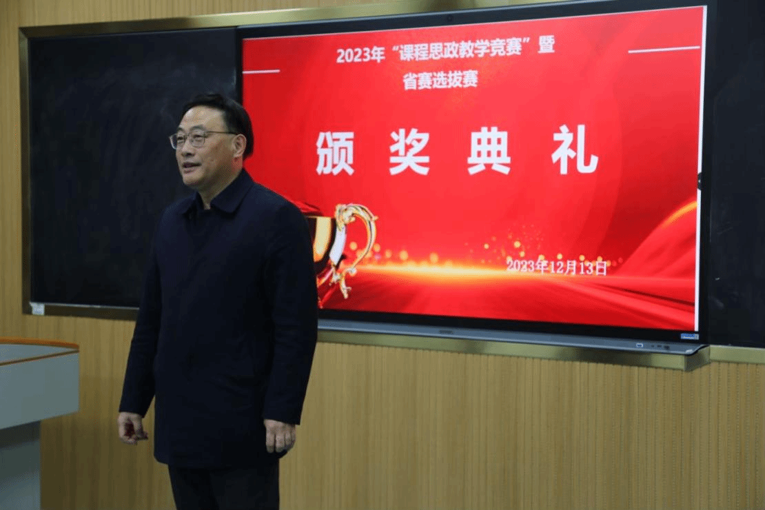 刘毅为比赛致开幕词。他指出,课程思政是对于教学教育性的传承与创新,也是贯彻落实我党教育宗旨的重要方式;课程思政的开展,让专业课承担起思政教育的任务,从日常教学中加强对学生思想政治的培养。希望参赛教师积极展示,观摩教师认真学习,全力为备战省赛做准备,全面提高课程思政水平。