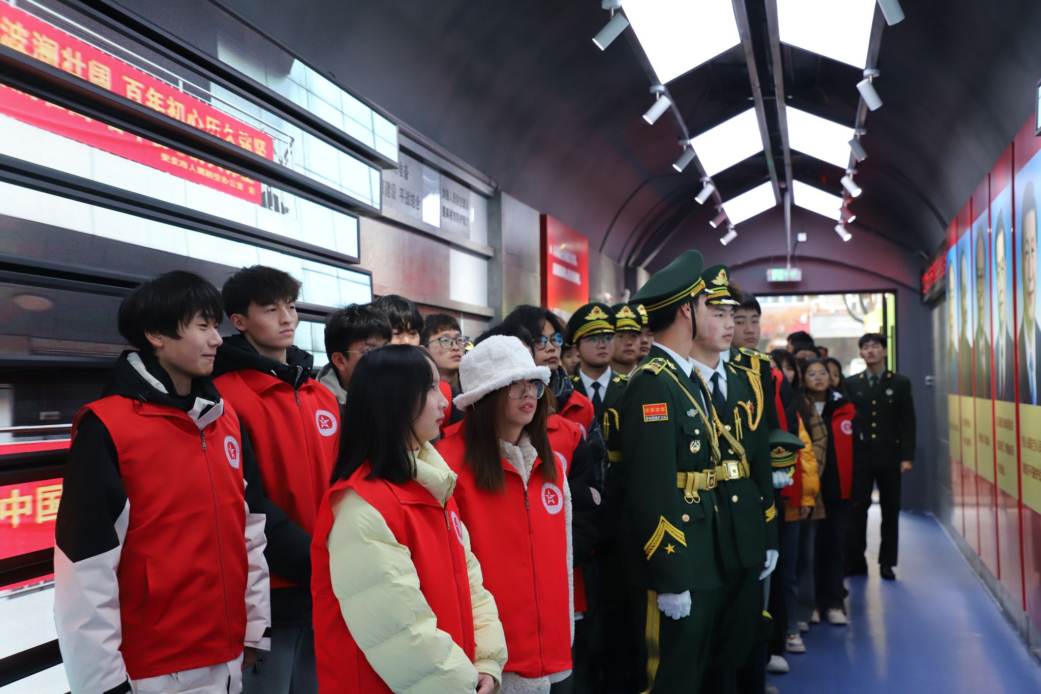 活动中,同学们通过沉浸式体验参观安庆市国防人防教育馆,进行征兵宣传主题实践活动。同学们认真观看了国防教育片,了解人防的由来、空袭兵器发展史以及各类灾害预防的基本知识。讲解员对每个板块进行了专业讲解,同时结合交通问答、应急救护、消防灭火、逃生结绳等进行安全教育,活动现场气氛热烈,志愿者们踊跃参与互动。