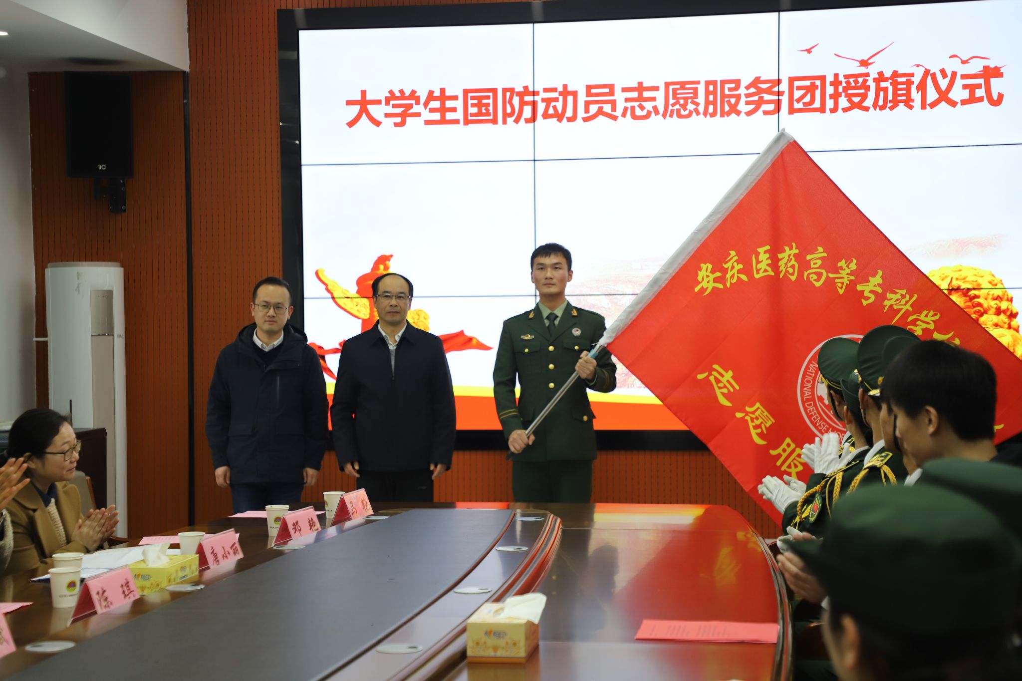 陈礼介绍了安庆市大学生国防动员志愿服务团成立的意义,对今年会国防教育工作表示高度肯定,希望进一步发挥学校在国防动员中的主阵地作用,深化高校国防教育,厚植大学生国防动员基础,全力营造青年学子关心国防、热爱国防、建设国防的浓厚氛围。
