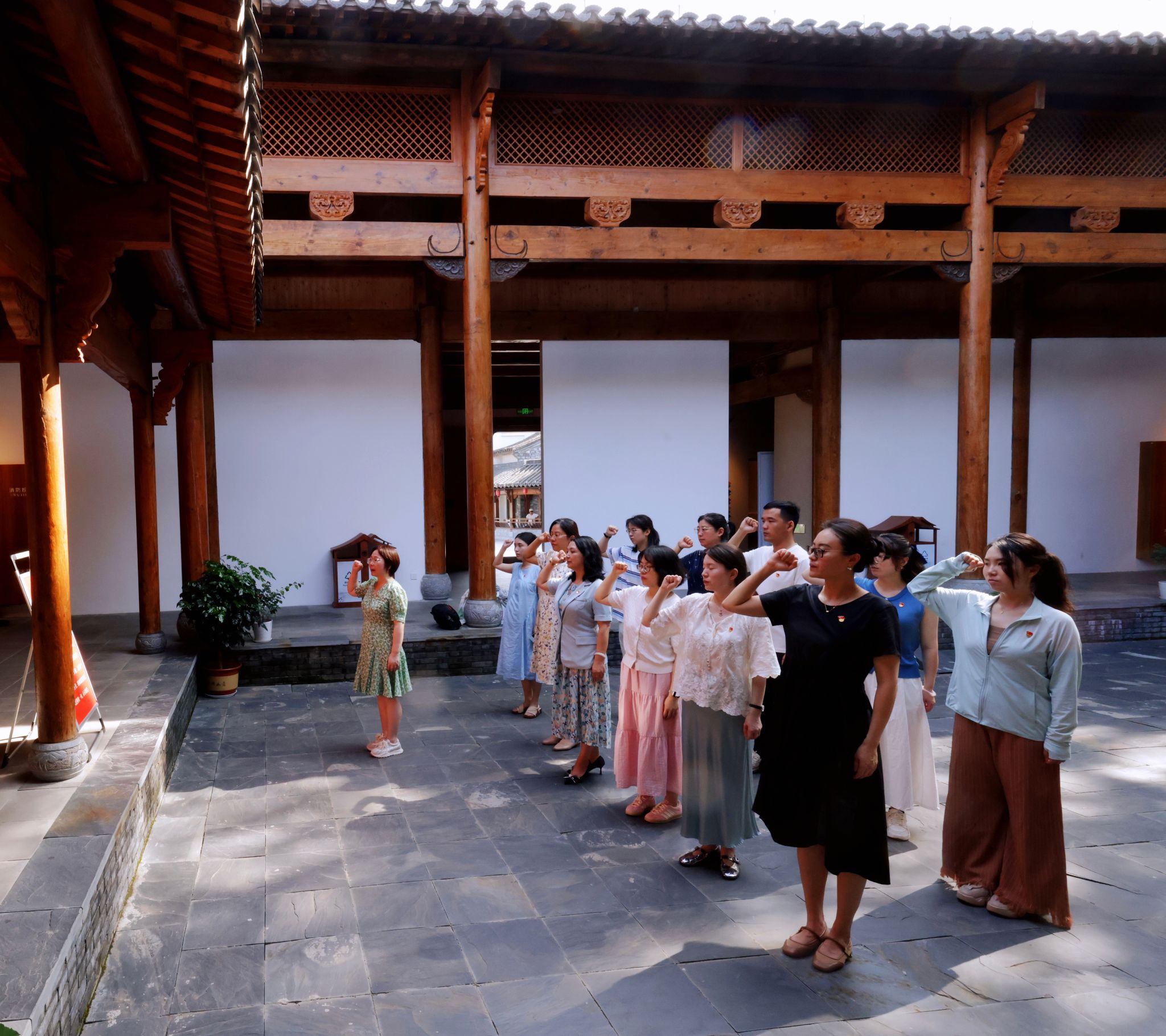 重温入党誓词 砥砺初心使命。在庄严肃穆的革命陈列馆前,全体党员面向党旗,高举右拳,重温入党誓词。“我志愿加入中国共产党……”铿锵有力的誓言回荡在现场,表达了全体党员不忘初心使命、永葆政治本色的坚定决心。活动最后,支部为第二季度入党的党员过“政治生日”仪式,送上纪念贺卡和书籍,勉励大家时刻铭记党员身份,立足岗位担当作为。