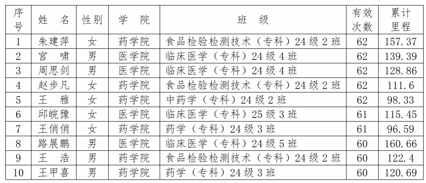 月度“乐跑之星”的评选,不仅成功引导学子们走出宿舍、走向操场,在运动中强健体魄、磨砺意志,更搭建起充满活力的交流平台,让友谊在并肩奔跑中升温。不少同学表示,将以校园乐跑为起点,把运动融入日常,养成受益终身的健康习惯,带着奔跑赋予的活力与韧性,在未来的学习生活中继续奋勇向前。(文/图:学生记者 吴祖琬;审核:唐小丽)