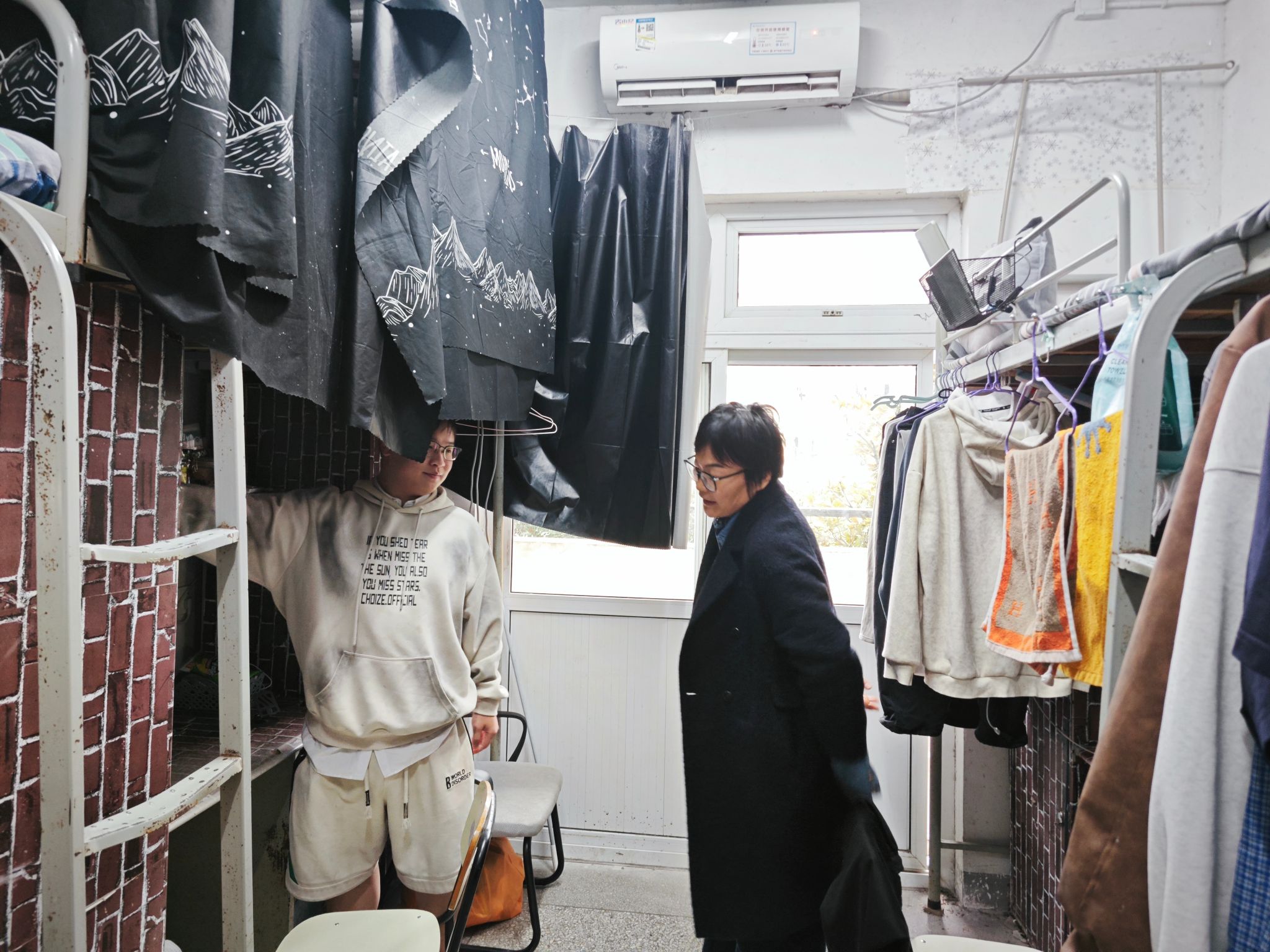 之后学院老师深入学生宿舍,畅所欲言,气氛热烈而融洽。老师们耐心解答疑问,倾听学生心声;同学们踊跃分享想法,感受组织关怀。在深入的互动中,思想引领悄然深化,成长关怀落到实处,“六好”标准的具体要求内化于心、外化于行。