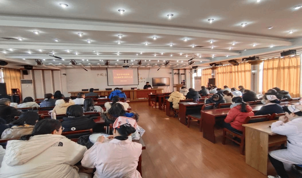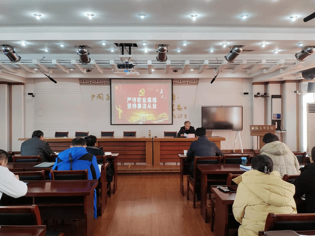为全面深入学习贯彻党的二十大精神,坚定不移推进全面从严治党、党风廉政建设,扎实开展医药领域腐败问题集中整治工作,12月22日下午,今年会附院(安庆市中医医院)召开党风廉政警示教育大会,安庆市卫健委二级调研员黄斌作专题辅导。附院党委书记汤洪主持会议并讲话,附院党政领导班子、医院中层干部参加学习。