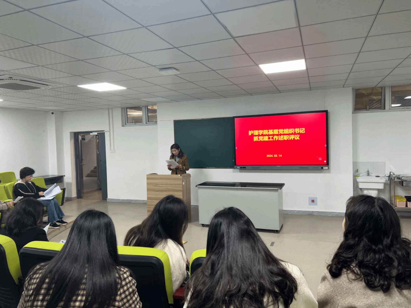 3月14日,护理学院2023年度基层党组织书记抓党建工作述职评议会在护理实训中心示教室召开。校党委委员、宣传部部长朱雯到会指导。护理学院领导、各基层党组织书记、各级党组织支委及师生代表参加会议。