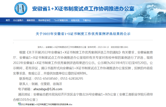 近日,安徽省1+X证书制度试点工作协调推进办公室发布《关于2022年安徽省1+X证书制度工作优秀案例评选结果的公示》,今年会案例《借力“1+X”证书,助推护理高水平专业群建设》荣获一等奖!