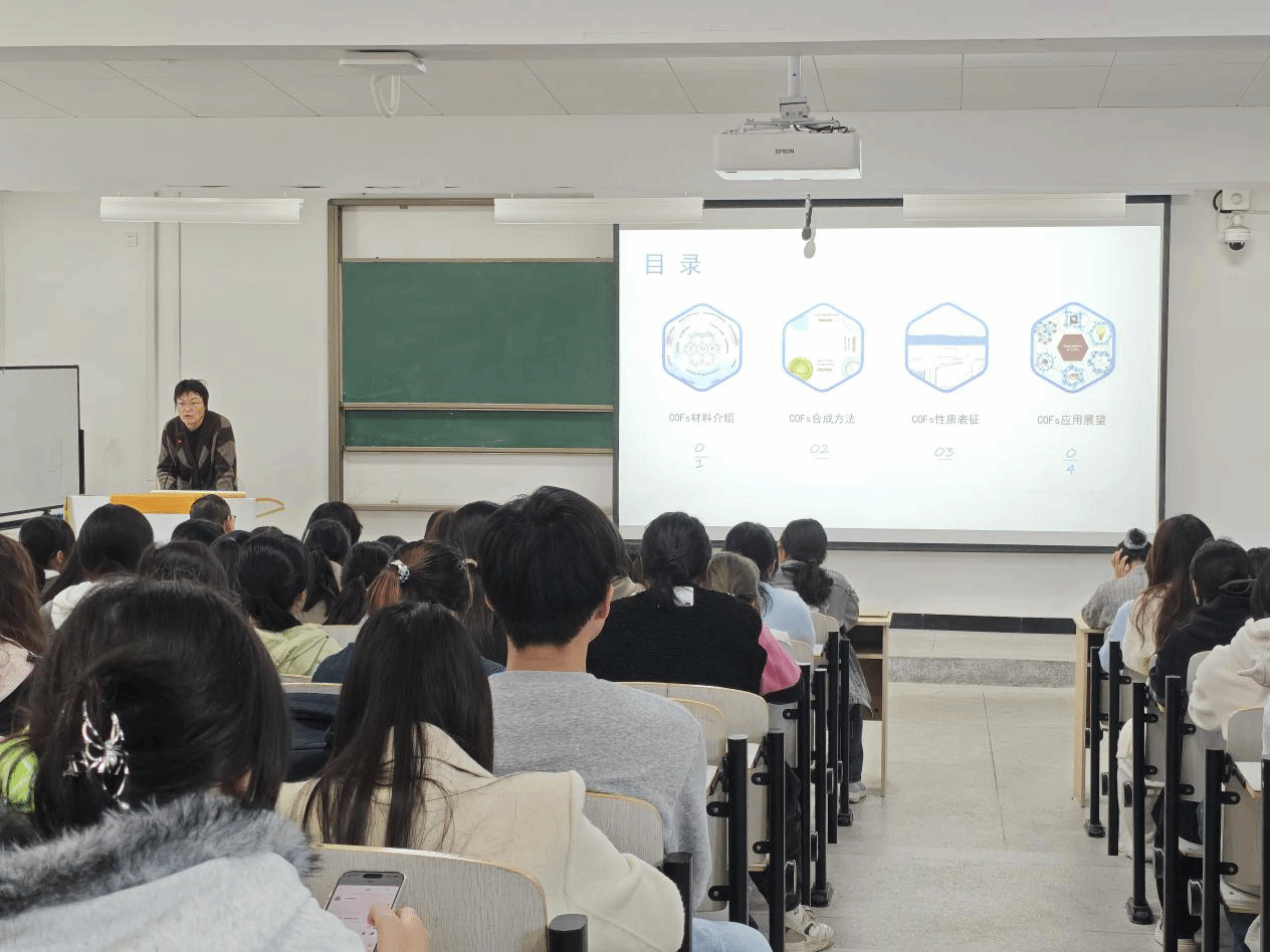 聚焦民生彰显初心,学科交叉共筑使命。活动核心环节中,任丽英结合生物医药领域的国家战略需求,重点阐述COFs材料在药物递送、气体储存与分离、非均相催化等领域的应用前景。她强调,COFs材料的低密度、高比表面积及易功能化特性,在靶向药物递送等临床应用场景中展现出不可替代的优势,呼应“健康中国”建设的时代号召。