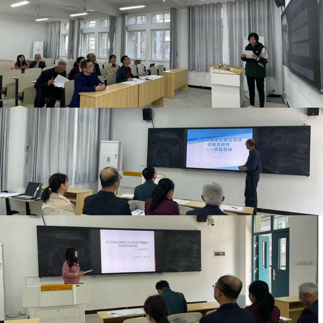 会上,各项目负责人分别就科研项目的开展和目标完成等情况通过PPT进行了演示,着重展示了项目执行情况、研究价值、研究成果等内容。评审专家以公平、公正、严谨、认真的态度,在听取项目负责人汇报的同时,结合查看项目成果报告等支撑资料,对各项课题进行了点评。专家一致认为,我院参加结题答辩的3个项目在选题上具有重要的理论意义和实践意义,直面当前高等教育中的难点、痛点,研究方法科学,思路清晰,前期研究成果丰富,对教学实践进行了比较全面的归纳总结提升,具有较强的示范价值及推广价值,基本完成了课题研究任务,可以顺利结题。同时,评审专家也对各项课题提出了切实可行的完善建议和改进方向,希望老师们继续修改完善,让研究成果更成体系,更有推广价值,发挥省级校级科研项目的绩效。