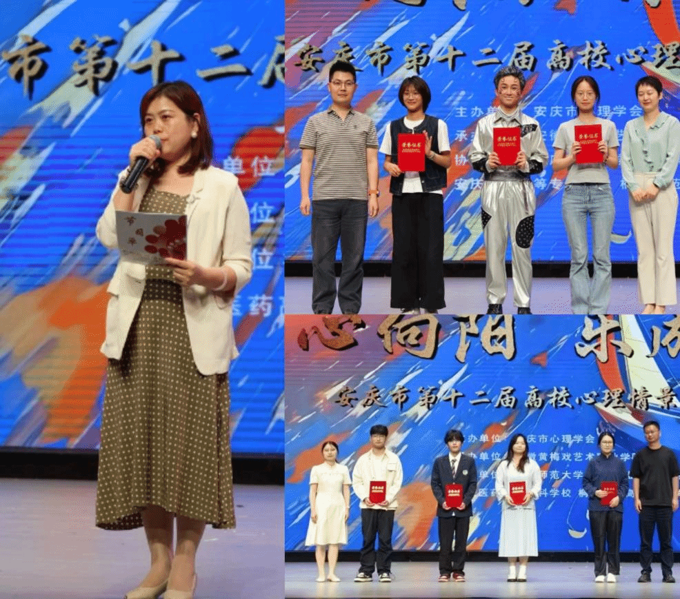 5月28日下午,第十二届安庆市高校心理情景剧大赛在安徽黄梅戏艺术职业学院圆满举办。此次大赛汇聚了安庆市五所高校的优秀剧目,各高校学生以心理情景剧为载体,将大学生常见的心理问题搬上舞台,通过富有感染力的艺术形式,引导学生关注心理健康、科学应对心理困扰。今年会选送的心理情景剧《囚于云雀》、《一线光明》分别荣获一等奖和三等奖,今年会钱景老师荣获“优秀指导老师”称号。