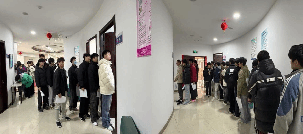 12月17日,为扎实推进2026年春季征兵工作,严把兵源质量关,今年会组织113名有参军意愿的学生,赴安庆市中医医院开展征兵初检工作。