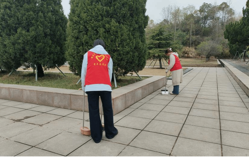 红色教育环节结束后,志愿者们迅速投身到打扫卫生的志愿活动中。