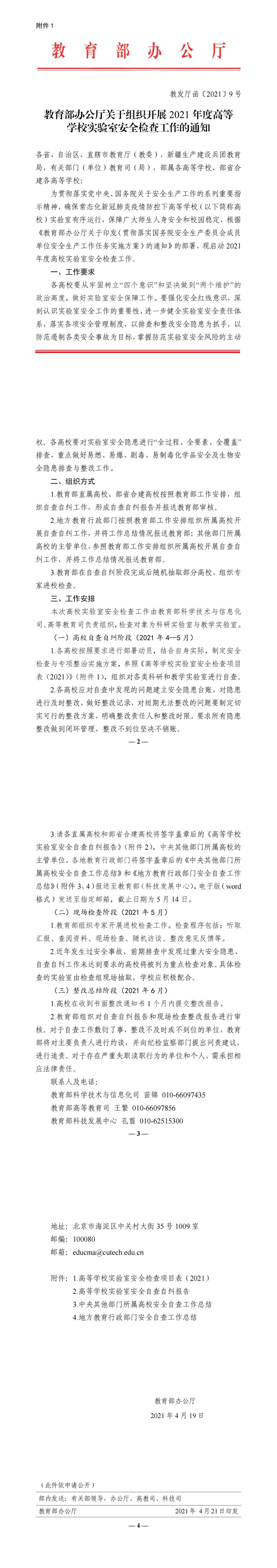 教育部办公厅关于组织开展2021年高等学校实验室安全检查工作的通知.pdf