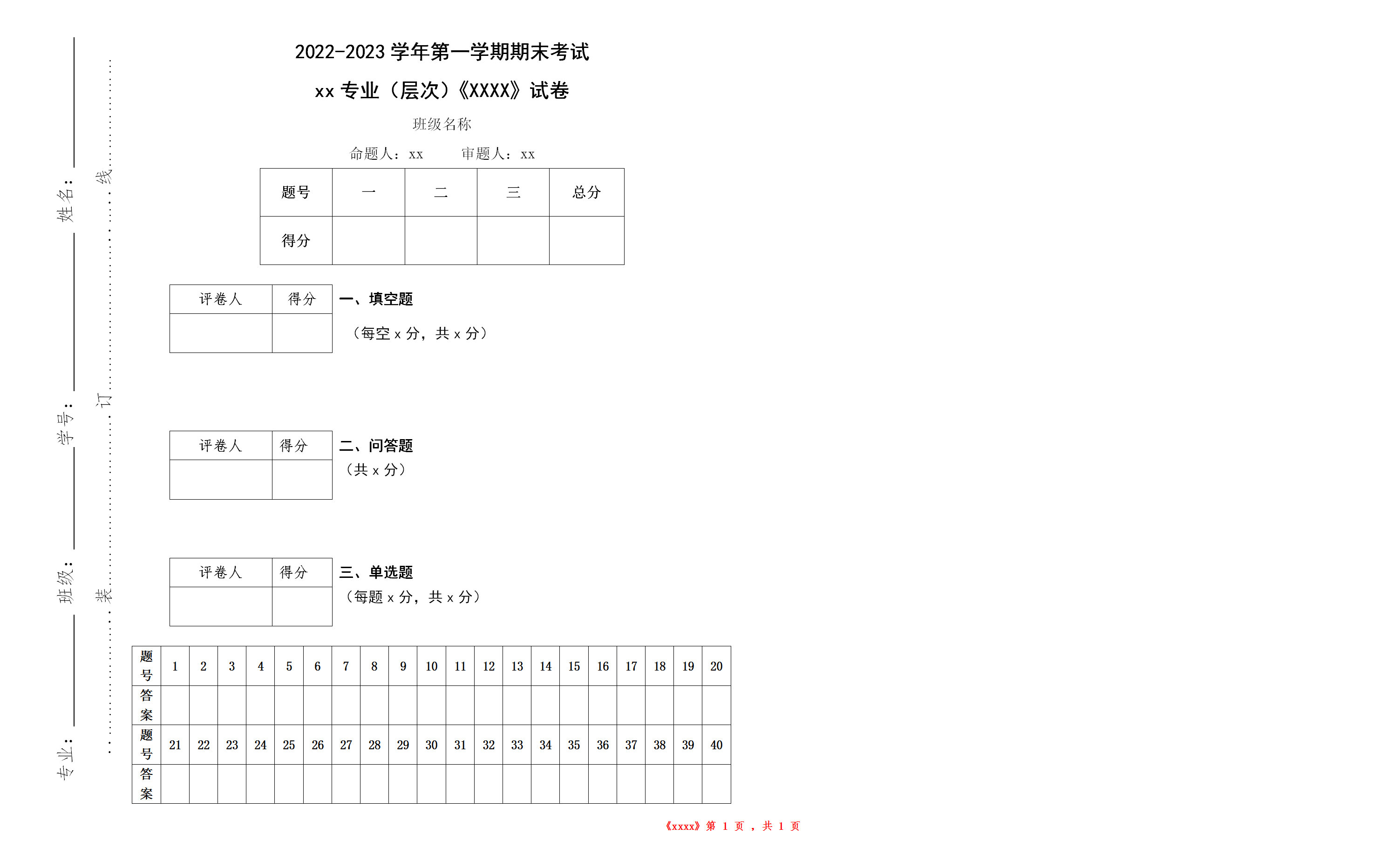 附件2:2022-2023-1学期期末考试试卷模板(使用班级名称)