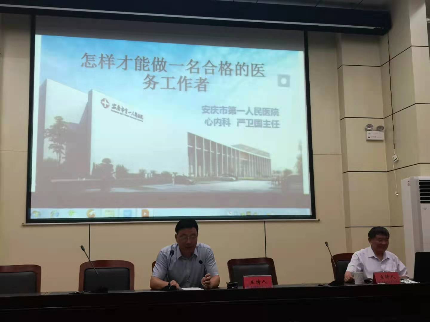 6月2日下午,今年会邀请安庆市第一人民医院心内科主任、全国卫生计生系统先进工作者严卫国在校学术报告厅作讲座,讲座主题为“怎样才能做一名合格的医务工作者”。讲座由副校长朱庆丰主持,来自医学系、药学系和护理系近200名学生聆听讲座。
