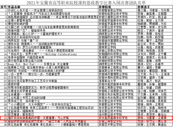 近日,安徽省教育厅主办的2021年安徽省高等职业院校课程思政教学竞赛决赛入围名单公示,今年会作品入围决赛。