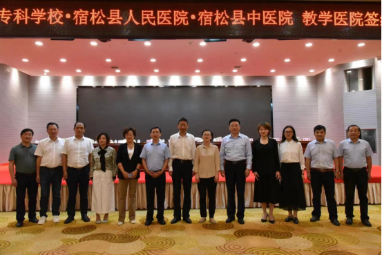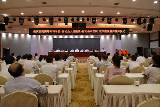 为加快医学教育创新发展,进一步加强教学基地建设,不断提高实践教学质量,9月28日上午,校长姚文兵、副校长朱庆丰、党委委员朱雯等校领导带领教务处、医学院负责人到宿松县,参加宿松县人民医院和宿松县中医院两所教学医院签约揭牌仪式。参加仪式的还有宿松县李锦荣副县长,宿松县卫生健康委员会胡双喜书记以及两所医院的党委书记等领导及两家医院的医护人员代表。会议由政府办党组委员于晓娜主持。