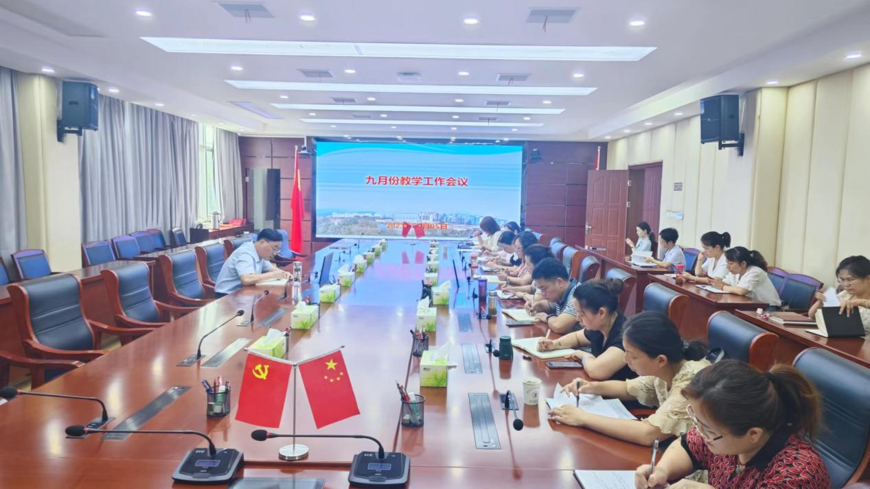 新学期、开新局、谋新篇,为确保各项教学工作有序推进,9月5日下午,学校在行政楼三楼大会议室召开2023-2024学年秋季学期教学工作会议,副校长朱庆丰出席会议并讲话,各学院院长,相关职能部门负责人,教务处全体人员参加会议。会议由教务处处长汪瑞主持。