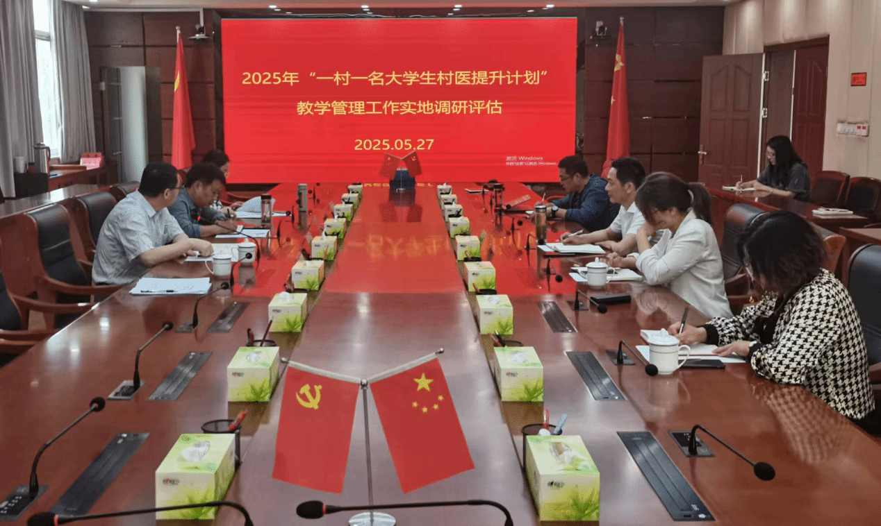 2025年5月27日,省卫生健康委科教处处长李家龙一行来今年会,就2024-2025学年安徽省“一村一名大学生村医提升计划”教学管理工作进行实地调研。校党委委员刘毅携校村医学历提升工作专班人员参加调研组座谈会议。