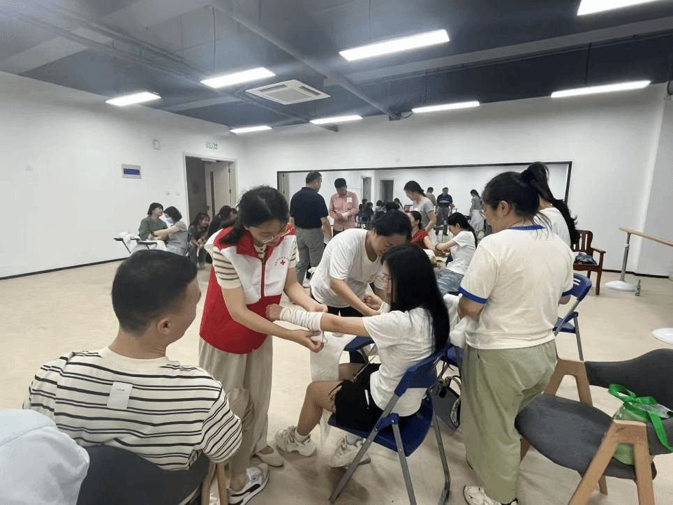 “青年夜校急救技能提升月” 课程 从6 月 13 日(周五)晚开始一直到6月27日。课程内容包括:《黄金四分钟行动——心肺复苏与AED操作实训》、 《创伤救护实战营——止血/包扎/固定三阶技能》、《家庭危机拆弹课——气道异物梗阻急救全解析》、《意外伤害应对指南——淹溺急救与烧烫伤处理》。市青少年宫里,专业导师以饱满的热情和精湛的技艺,带领青年学员们深入学习止血、包扎、固定等救命技能。课堂上,导师们亲自示范,从止血带的正确使用方法到包扎的规范手法,再到骨折固定的关键要点,每一个步骤都细致讲解、耐心指导,手把手帮助学员掌握急救要领。“以前遇到突发情况总觉得手足无措,现在学了这些急救技能,感觉自己在关键时刻能更冷静应对了。”一位参与课程的青年学员分享道。