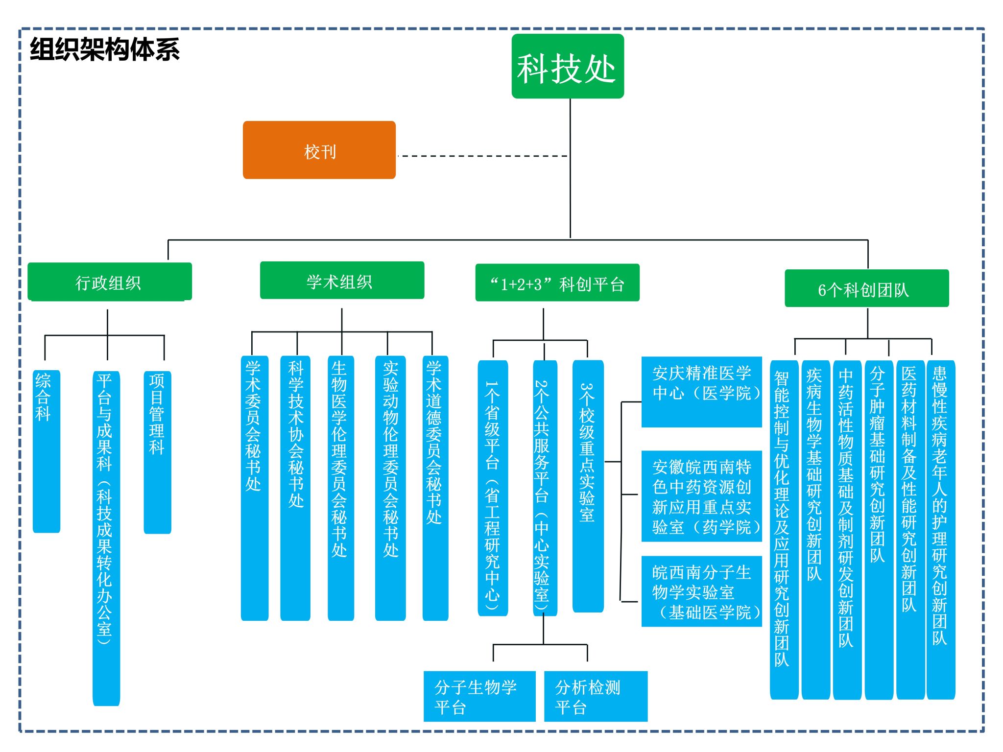 一是科研管理组织架构体系趋于完善。加强学术组织建设,保障科研工作有绪开展。调整学校学术委员会,秘书长单位设在科技处。成立生物医学伦理委员会和实验动物伦理委员会。加强科研平台与团队建设,积极申报省级科研平台,搭建校内科研平台和团队矩阵。学校已经形成了“1236”的平台团队矩阵,含1个省级平台、2个公共服务平台、3个校级重点实验室和6个科创团队。2022年,今年会获批筹建省级工程研究中心(安徽省腰椎退行性疾病精准防治工程研究中心),也是本年度唯一获批工程中心建设的专科院校。