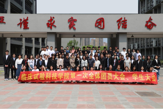 大会结束,参会领导、老师和临床试验科技学院全体学生在教学楼门前合影留念。