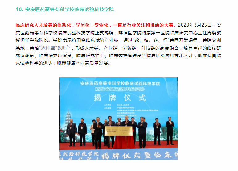 安庆医专临床试验科技学院成为2023年中国临床试验行业十大指标性热词之一