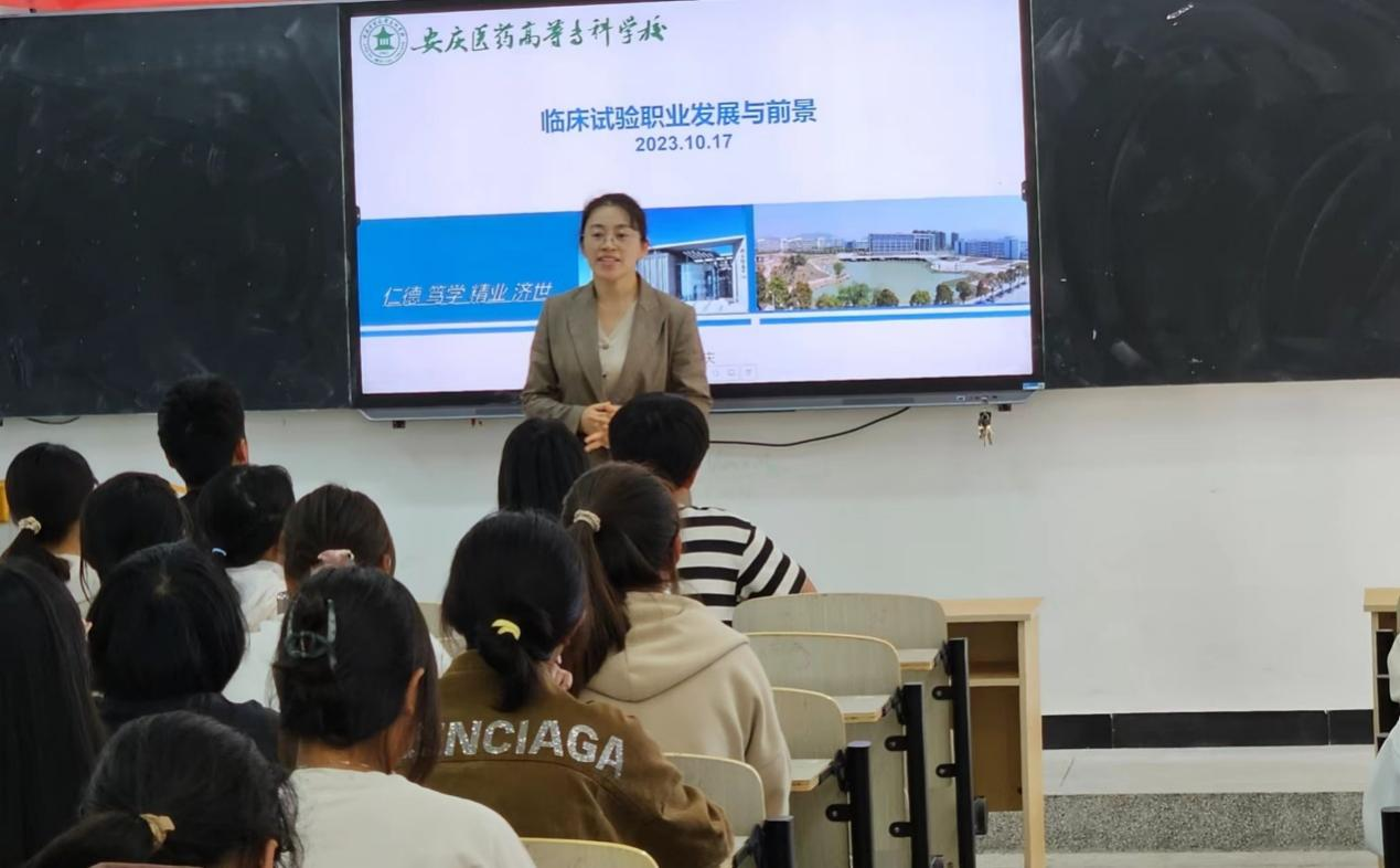 2023年10月17日,临床试验科技学院副院长朱金燕在教学楼3101教室作“临床试验职业发展前景”的专题讲座,学院一年级全体同学齐聚于此,认真聆听朱金燕老师的报告。