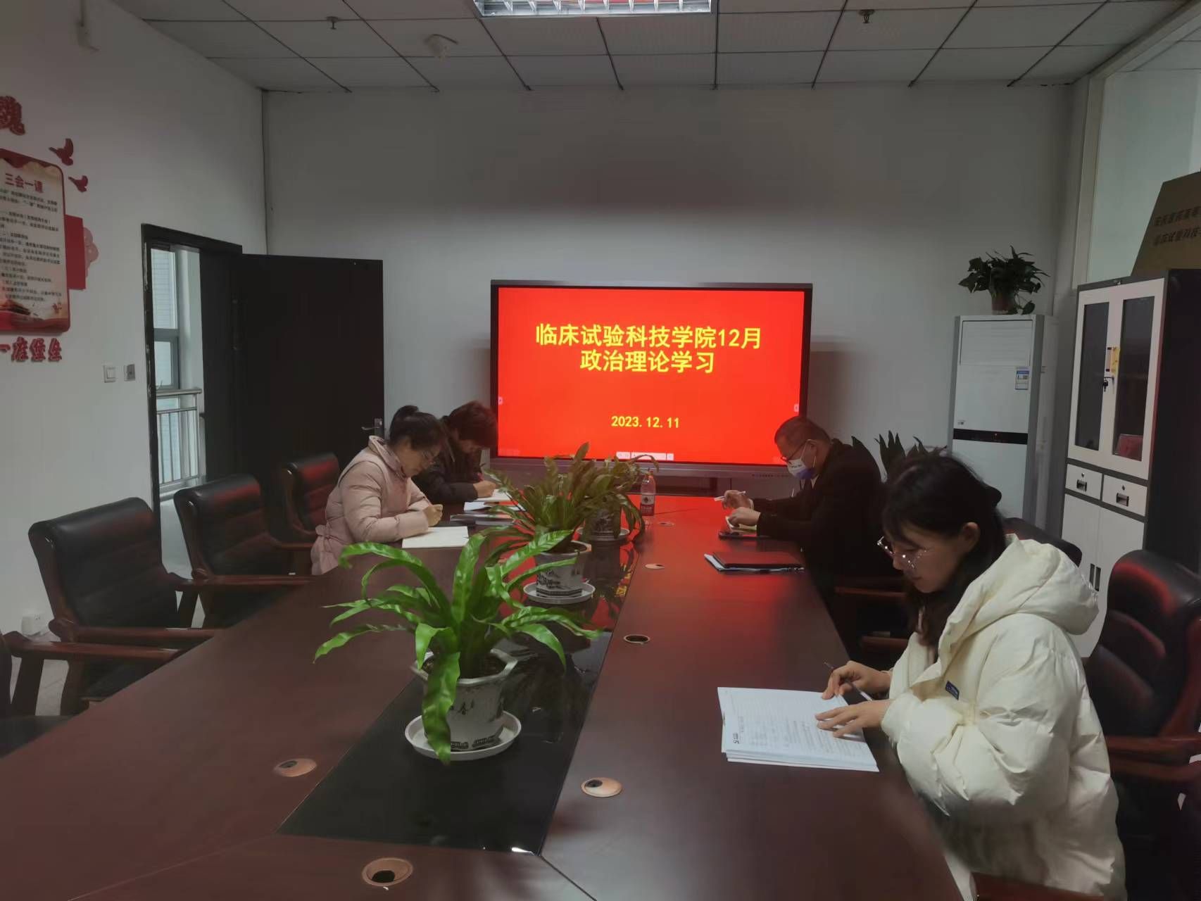 12月11日中午,临床试验科技学院全体党员在学院会议室开展12月主题党日暨政治理论学习会,会议由直属支部副书记任丽英主持。