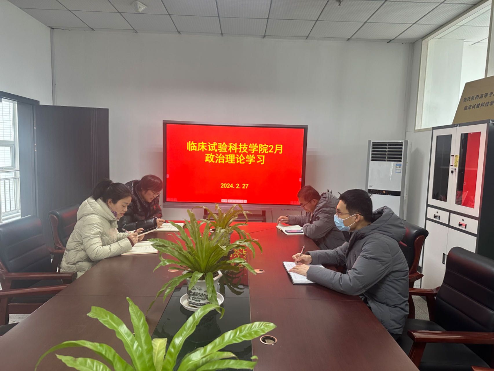 2月27日上午,临床试验科技学院开展政治理论学习暨二月份主题党日活动。会议由直属党支部副书记任丽英主持,全体教职工参加会议。会议集中学习习近平总书记在“国家工程师奖”首次评选表彰之际作出的重要指示精神;钱桂仑同志在2024年全省教育工作会议上的讲话精神。