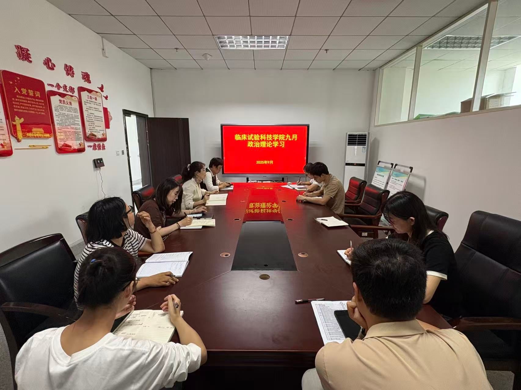 9月19日,临床试验科技学院以“深学理论、细悟思想、笃行实干”为主题,组织召开九月政治理论学习会议。学院全体教师参会,会议围绕学习主题深入开展交流,推动理论学习往深里走、往实里走、往心里走。