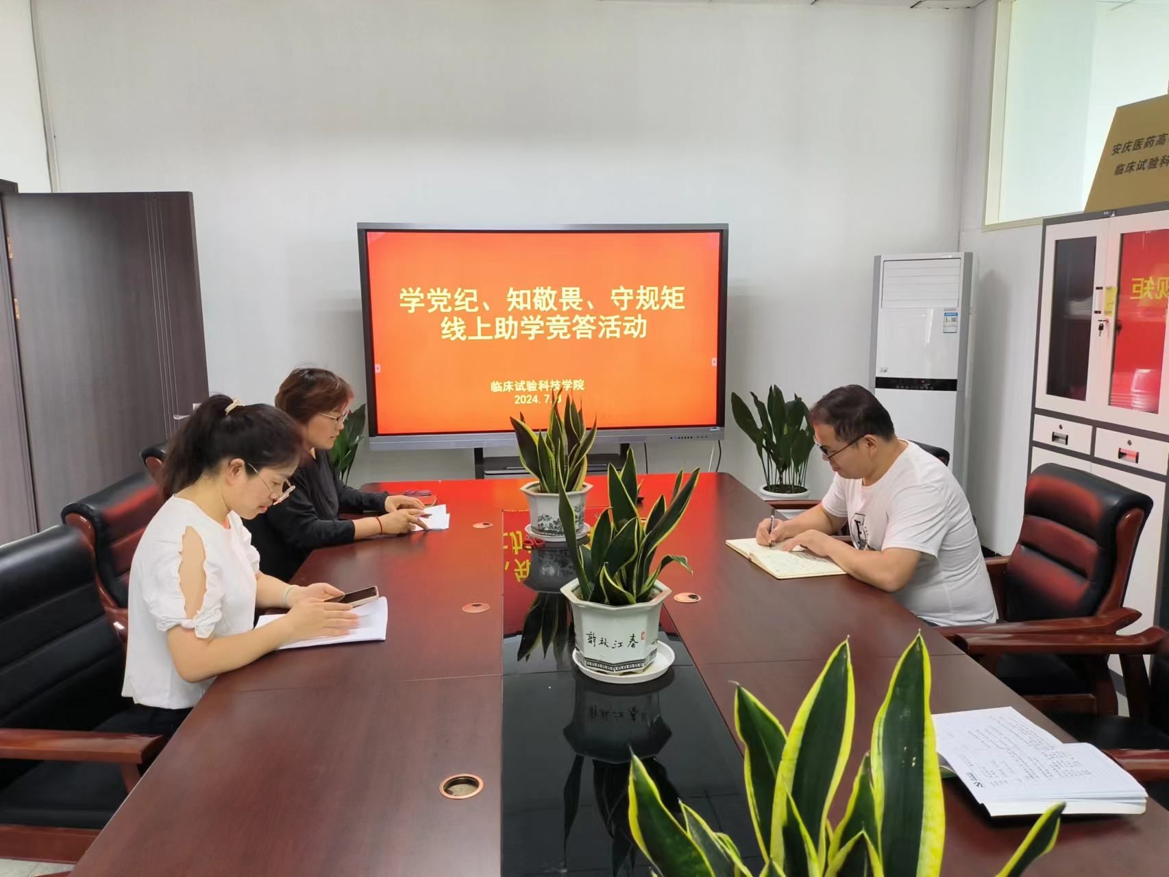 7月3日,临床试验科技学院党支部组织全体党员开展“学党纪、知敬畏、守规矩线上助学竞答活动”,全体党员认真学习了《中国共产党纪律处分条例》第九章至第十一章内容,并对条例中违反群众、工作、生活纪律行为的处分规定进行研讨和交流。学习结束,全体党员参加了线上党纪知识竞答。7月10日,党支部组织开展七月政治理论学习活动,专题开展党史学习教育,学习习近平总书记关于学习党史的重要论述,并围绕学习党史开展集体研讨。会议强调,党的历史是最生动、最有说服力的教科书,要推动党史学习教育常态化长效化,引导广大党员把学习党史作为必修课和常修课。