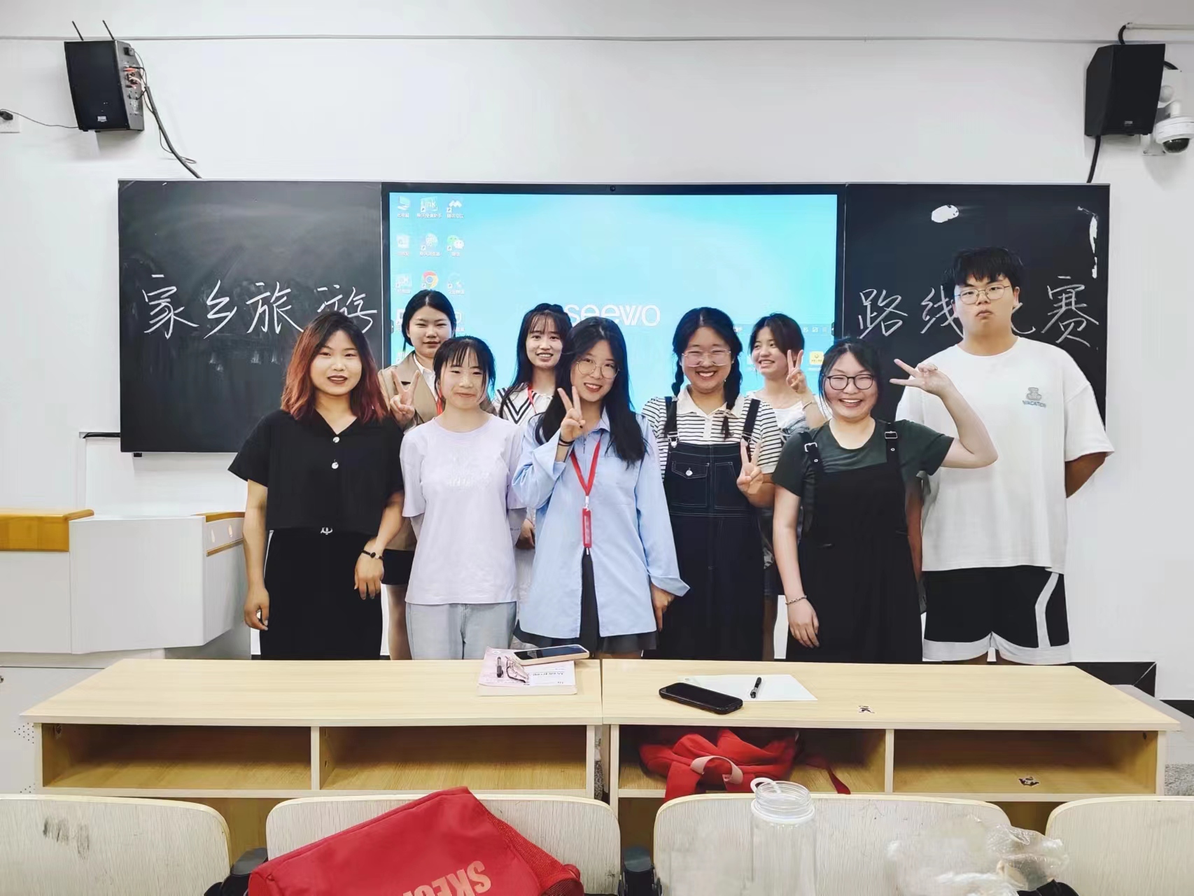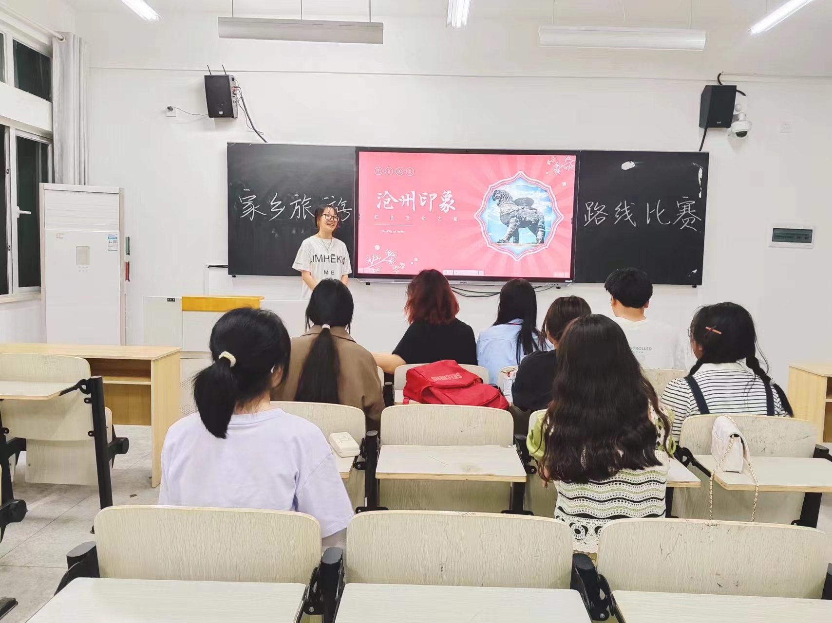 本次比赛是以PPT讲解的形式进行,通过PPT介绍家乡的旅游景点并设计合理的旅游线路。比赛现场,每位参赛者信心满满,满怀激情,向观众们介绍家乡的旅游景点、热门打卡点以及如何采用最经济的方式进行旅游等等,通过诉说自己的线路设计将家乡风土民情与地域特色充分展现,也体现了同学们对家乡的赞美与热爱。