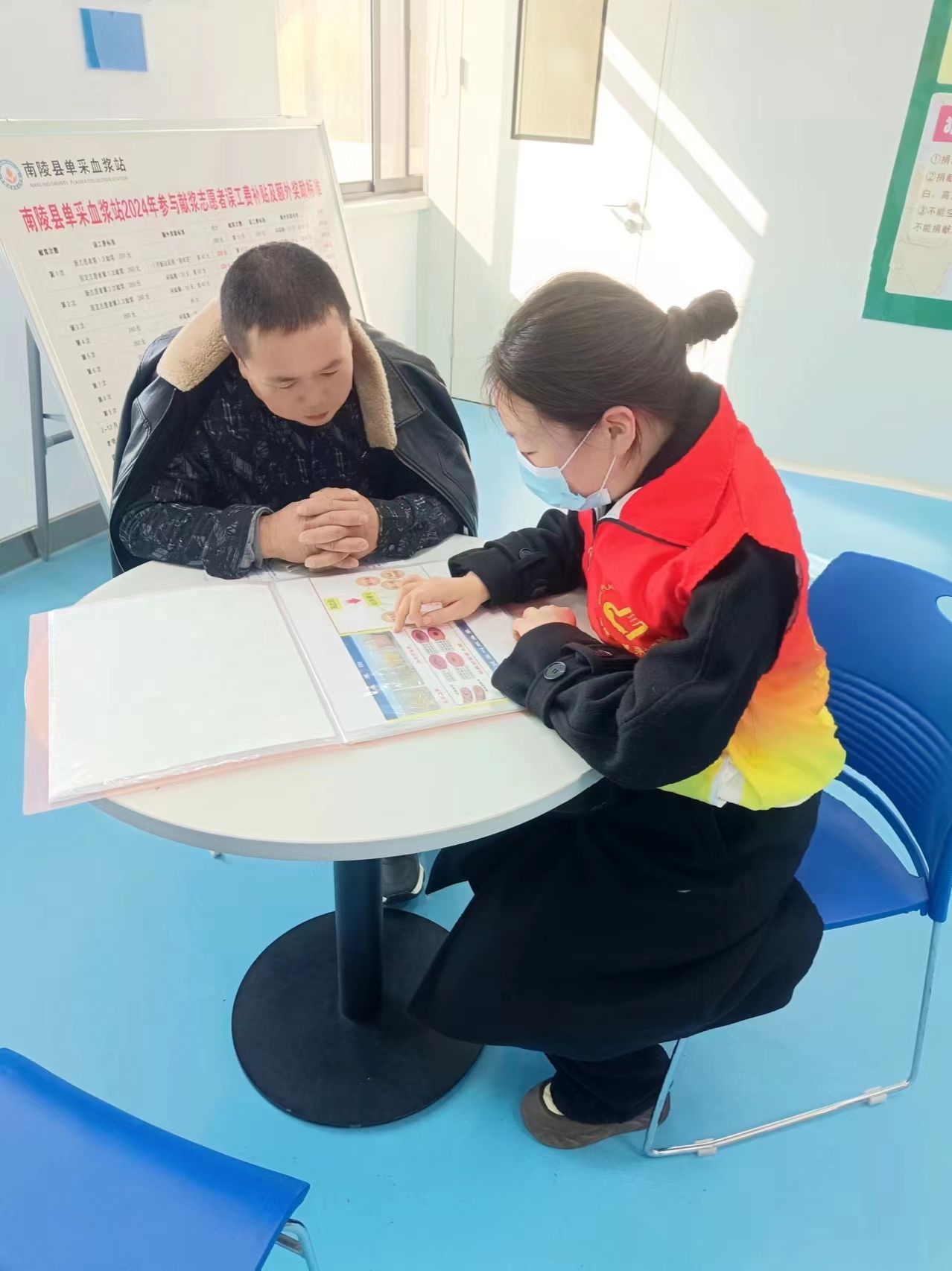 大家好,我是22级临床试验护理班秦英。寒假期间,我有幸参与了南陵县单采血浆站举办的“青春志愿行·温暖回家路”高校学子社会实践活动。当我穿上红衣少年志愿服的铠甲,我感到十分激动和喜悦。在这次活动中,我主要负责引导献浆人员取号、登记、体检、采血前检查等系列献浆流程性工作,同时向献爱心人士宣讲血浆知识并为他们提供力所能及的帮助,促进血浆站的采血工作的顺利进行。总有生命,因我们沸腾。通过这次活动,我学习到了许多关于血浆的健康知识,对献血浆的好处及意义有了更深的认识和体会。