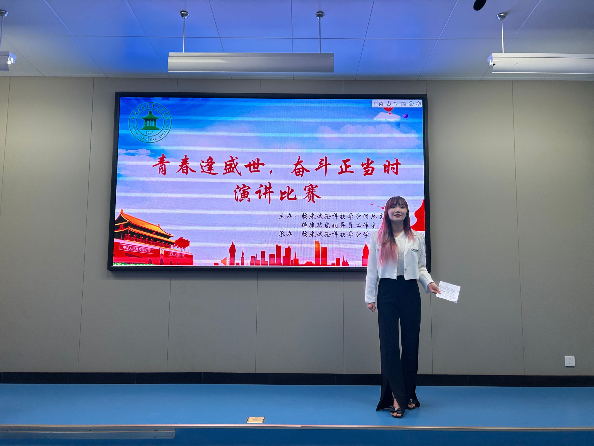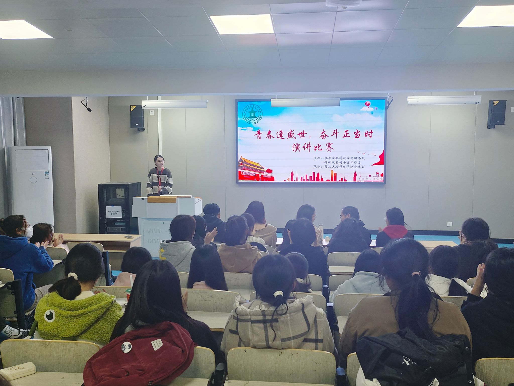 征途漫漫,惟有奋斗。习近平总书记说:“幸福是奋斗出来的。”为学习习近平总书记关于青年奋斗的系列寄语和讲话精神,丰富校园文化生活,2023年11月23日,临床试验科技学院在阶梯八教室举办“青春逢盛世,奋斗正当时”主题演讲比赛,学院22级和23级共计23名同学参加比赛,临床试验科技学院团总支书记刘双虎出席活动。