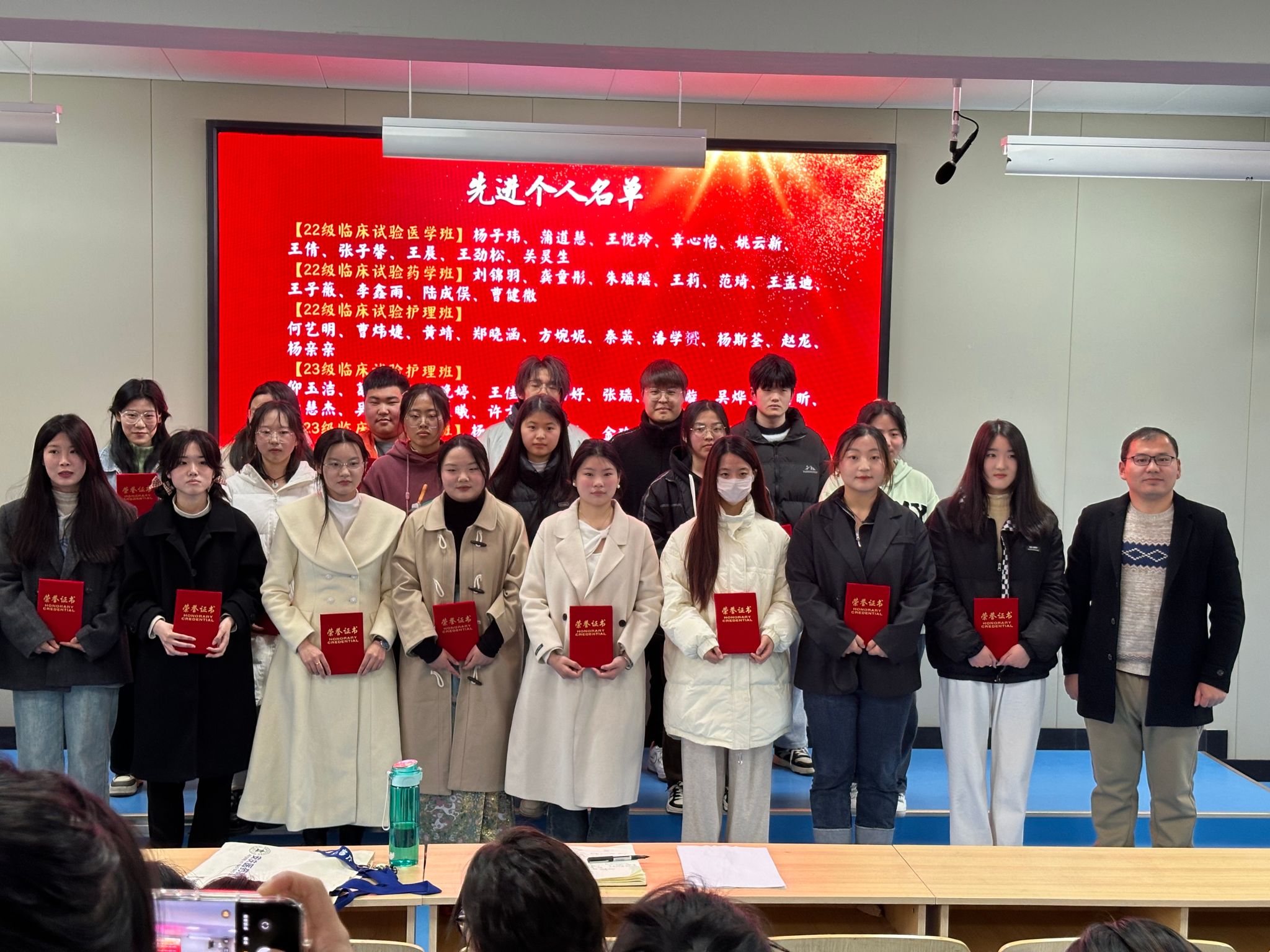 春来潮涌东风劲,扬帆奋进正当时。为选树先进典型,激发奋斗动力,2024年3月6日下午,临床试验科技学院在第八阶梯教室举办2024年寒假“返家乡”社会实践活动交流会暨表彰大会,临床试验科技学院团总支书记刘双虎出席活动,临床试验科技学院22级、23级学生参加大会。
