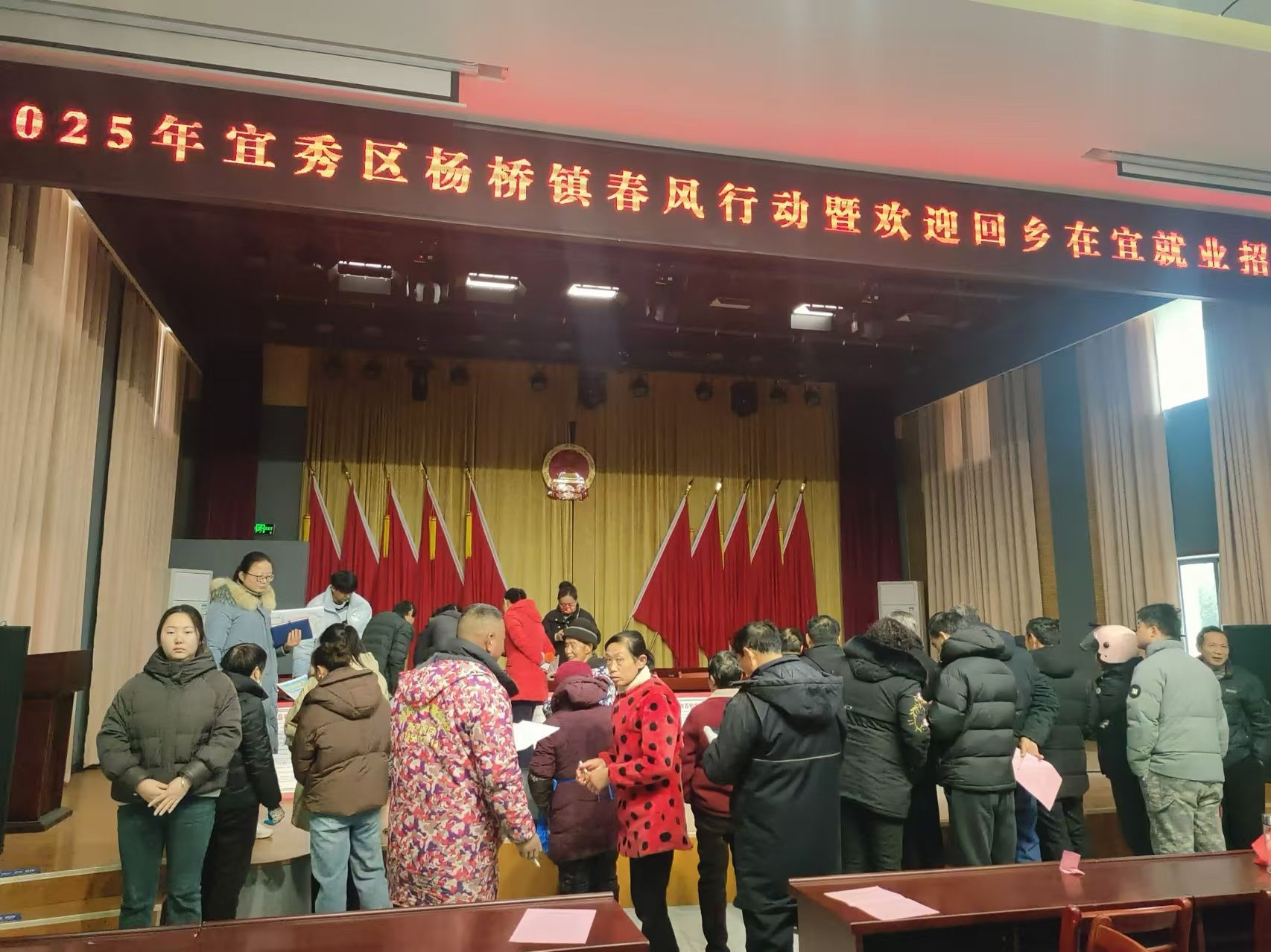寒假期间,我参加了安庆市宜秀区杨桥社区举办的就业招聘会志愿服务活动。在这次活动中,我主要负责引导求职者有序入场,解答他们关于招聘会流程、招聘企业分布、岗位要求等方面的疑问,协助企业招聘人员布置展位、发放招聘资料,确保招聘会的各个环节顺利进行。