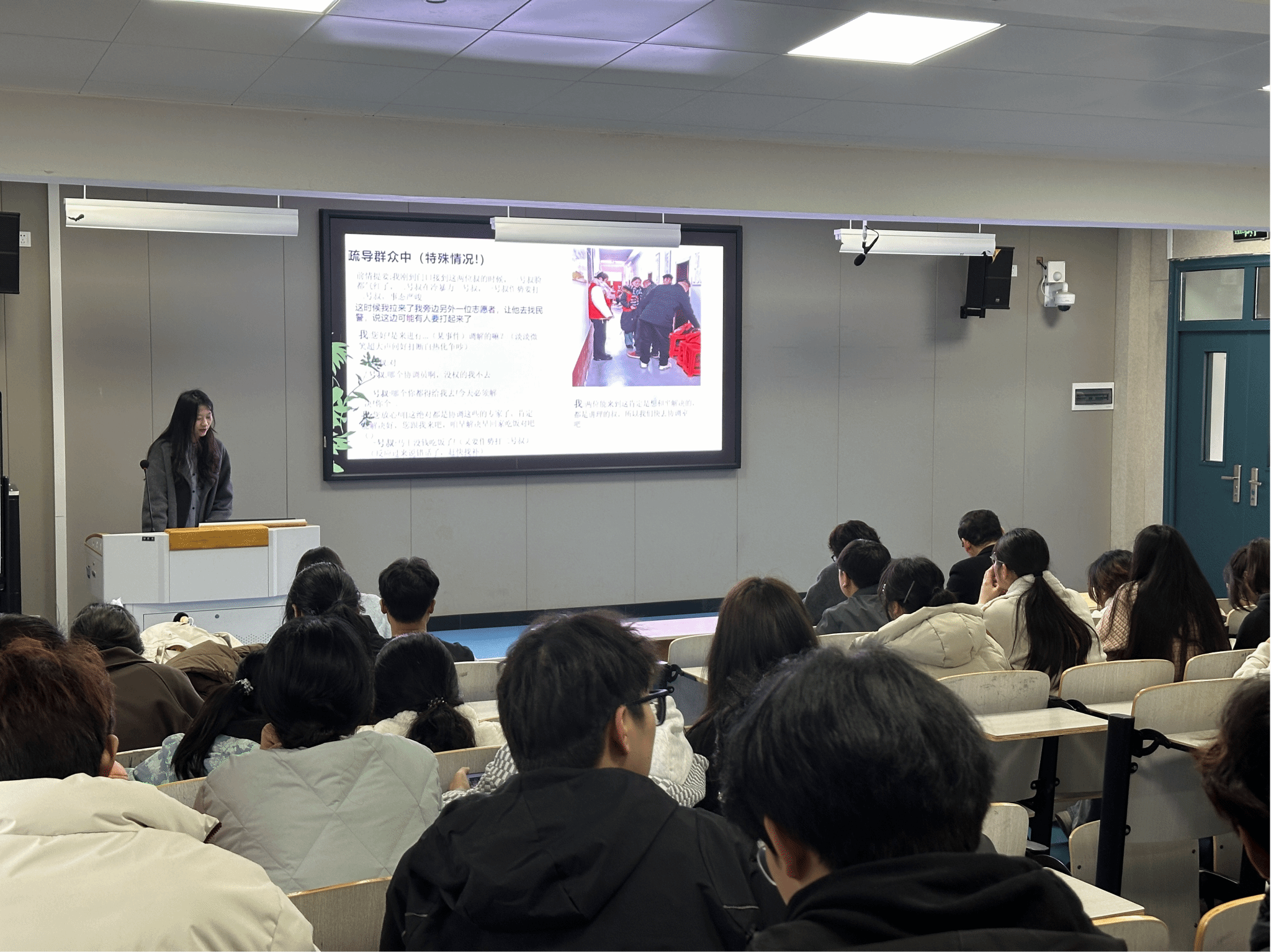 交流环节,刘俊辉、郝运、谢洋玲三位同学作为“返家乡”社会实践活动“先进个人”代表作分享交流。他们结合实践经历从活动策划、活动过程、成果展示、实践总结等方面,通过视频展示、PPT讲解等方式交流分享自己的“返家乡”社会实践故事。他们用生动的语言、鲜活的事例、真挚的情感,分享了他们在“返家乡” 社会实践中的所见所闻、所思所感,引发了在场师生的共鸣,现场不时响起热烈掌声。